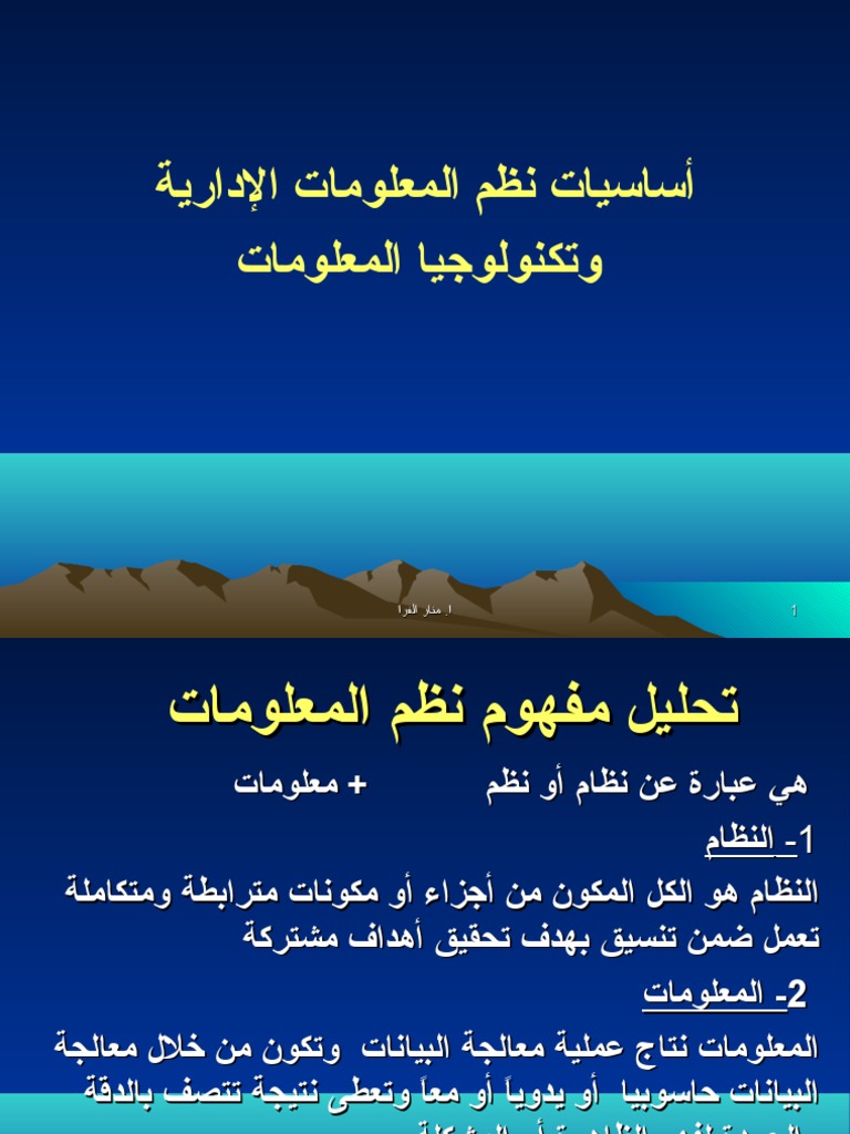 مساق مقدمة في النظم الفصل الثاني نظم المعلومات الادارية تعريف نظم المعلومات الإدارية المحاضرة 2 Youtube
